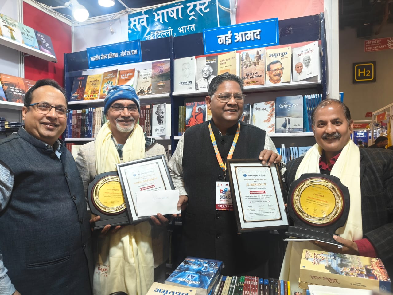 विश्व पुस्तक मेला के अंतिम दिने सर्व भाषा ट्रस्ट के स्टाल पर चौधरी कन्हैया प्रसाद सिंह स्मृति न्यास आरा आ सर्व भाषा ट्रस्ट का ओर से भोजपुरी साहित्य के संरक्षण-संवर्धन आ सृजन खातिर वर्ष 2025 का डॉ संतोष पटेल आ वर्ष 2026 का श्री जयशंकर प्रसाद द्विवेदी के ‘चौधरी कन्हैया प्रसाद स्मृति सृजन सम्मान’ से राष्ट्रीय पुस्तक न्यास के संपादक श्री लालित्य ललित के हाथों सम्मानित कइल गइल।
