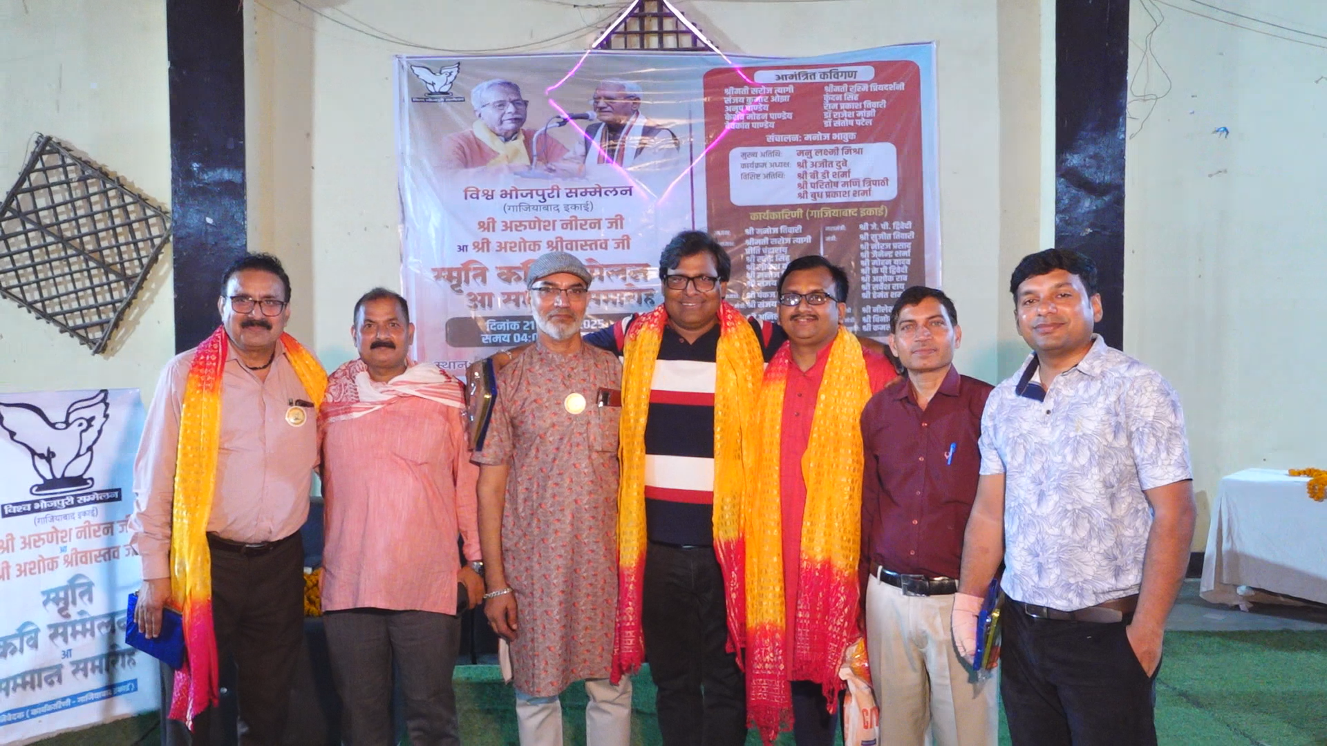 विश्व भोजपुरी सम्मेलन गाजियाबाद इकाई के द्वारा आयोजित ‘ स्मृति कवि सम्मेलन आ सम्मान समारोह’ अध्यक्ष मनोज तिवारी आ संयोजक महासचिव जे पी द्विवेदी क परयास सफलता का संगे धरती पर उतरल। कार्यक्रम कई गणमान्य लोगन के सम्मानित काइल गइल। स्मृति कवि सम्मेलन में कुल 11 गो कवि लोग शिरकत कइलें। कार्यक्रम के अध्यक्ष विश्व भोजपुरी सम्मेलन के राष्ट्रीय अध्यक्ष अजीत दुबे जी आ मुख्य अतिथि श्रीमती मनु लक्ष्मी मिश्रा रहलें । कार्यक्रम दू सत्र में रहे । पहिलका सत्र के संचालन इकाई अध्यक्ष मनोज तिवारी जी आ दोसरका सत्र ‘ कवि सम्मेलन’ के संचालन मनोज भावुक जी कइलें।